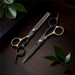 Részletek »Hajvágó olló szett fekete arany egonómikus kialakítással 5.5 és 6.0 TCS-76000391286-otthon