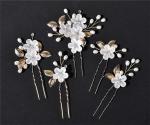 Részletek »Menyasszonyi - esküvői - party hajdísz fehér virágok arany levelekkel strassz hajtű 5db-os szett