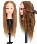 Részletek ».Fodrász babafej vállakkal 60cm protein alapú szintetikus világos barna hajjal
